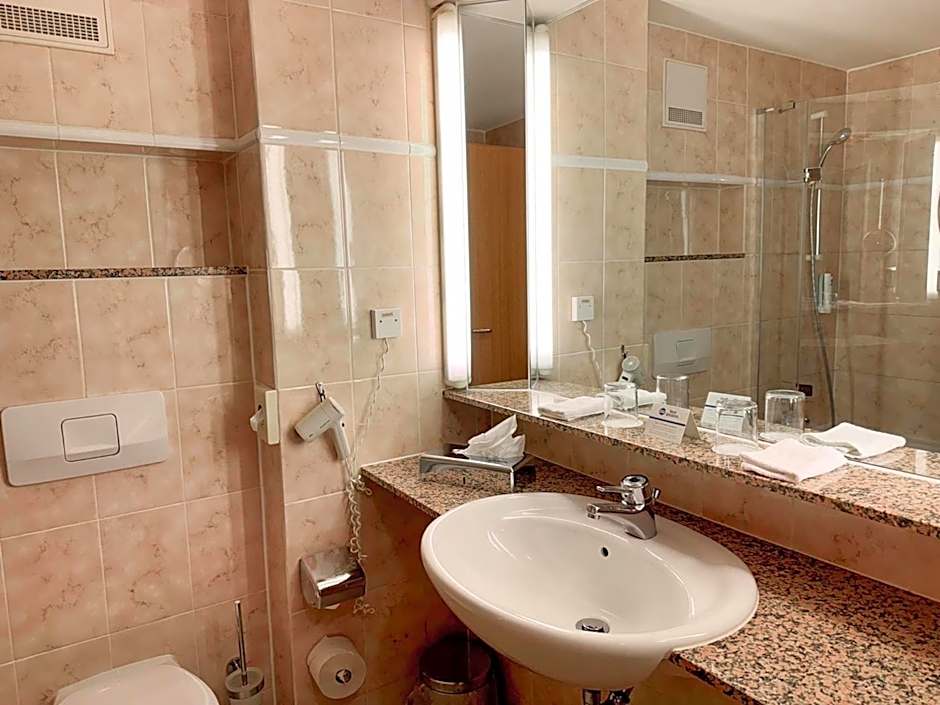 The spacious double room offers soundproof walls, a mini-bar, as well as a private bathroom boasting a bath and a hairdryer. The double room has carpeted floors, a seating area with a flat-screen TV, a wardrobe, a safe deposit box, as well as heating. The unit has 1 bed.